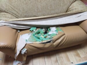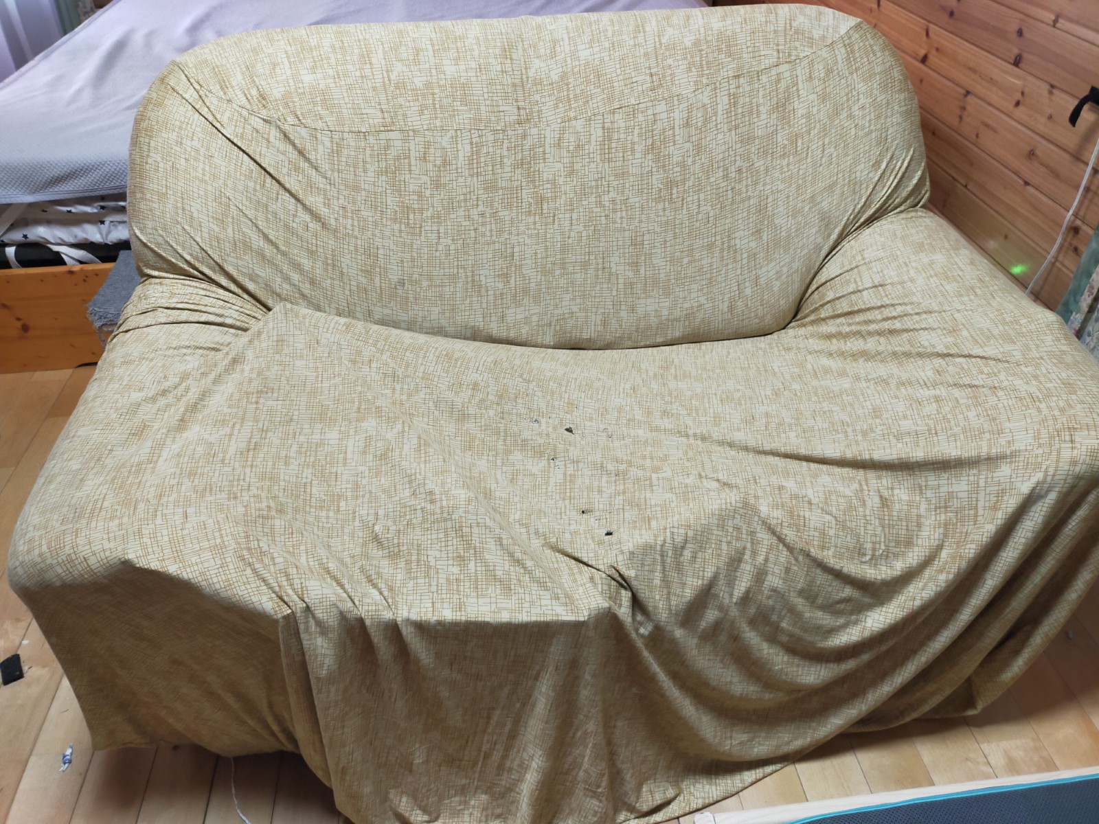 寝室のソファーカバーを外すと